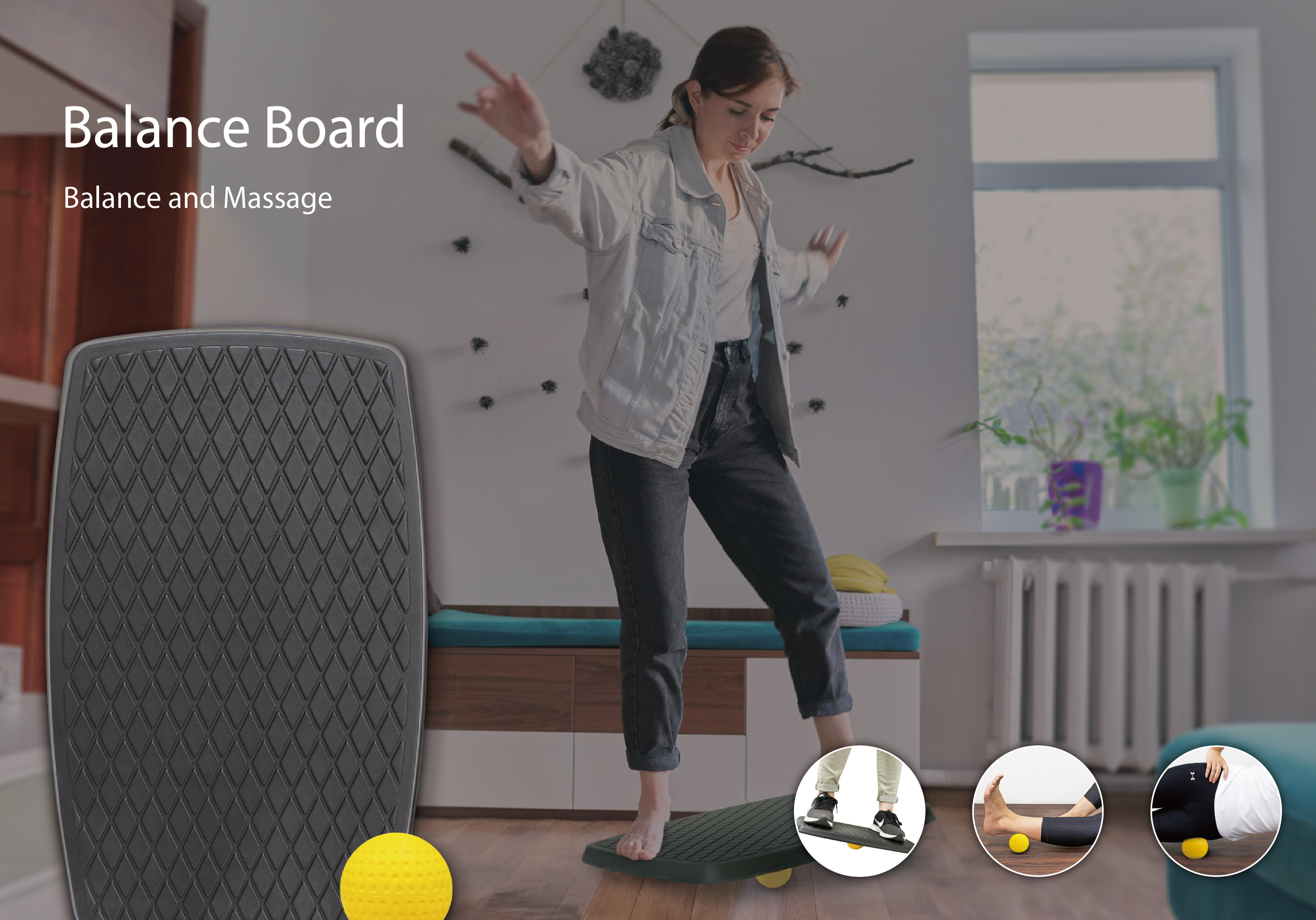 With the combination of EVA foam and wood, making the balance board strong and supportive while standing on it. The natural rubber ball is not only an eco-friendly base for the board but can also simply be a massage ball for myofascial release.