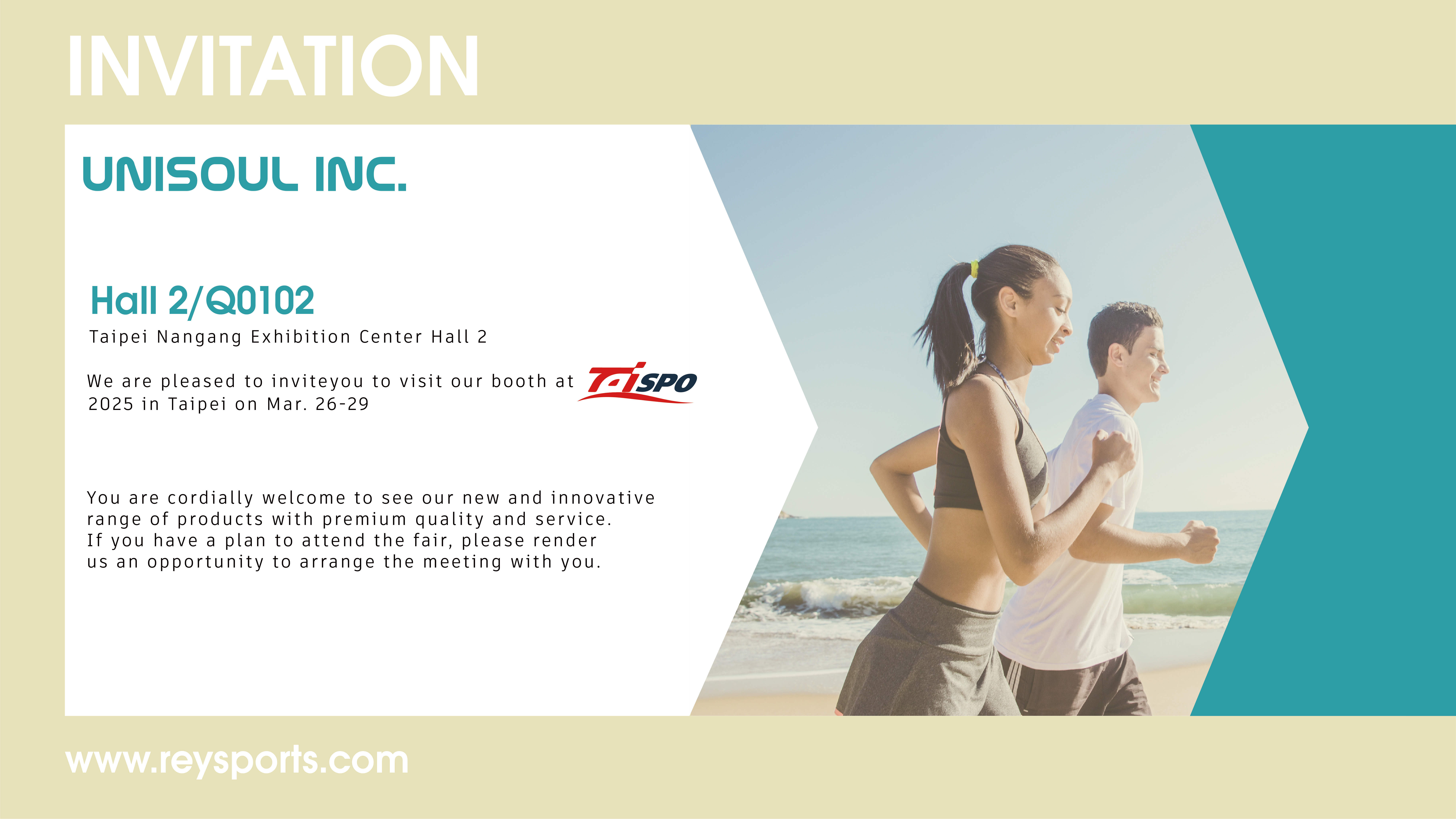 We are pleased to invite you to visit our booth at TaiSPO 2025 in Taipei on Mar. 26th ~ Mar.29th. You are cordially welcome to see our new and innovative range of products with premium quality and service. If you have a plan to attend the fair, please render us an opportunity to arrange the meeting with you.
