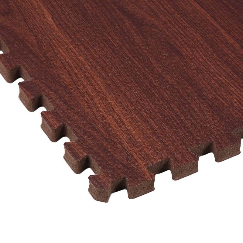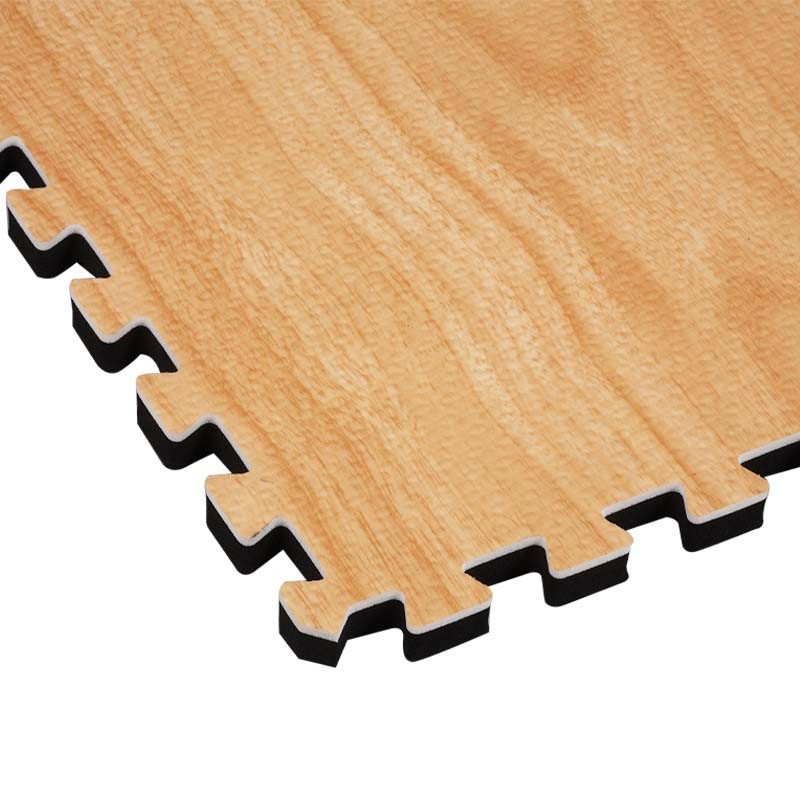 This puzzle mat is made with an EVA+PE foam base topped with a PVC film featuring a wood grain design. Using heat-lamination technology, the film is firmly bonded to the foam, ensuring durability and preventing the wood pattern from fading or peeling. Strong, stable, and stylish for long-term use.